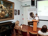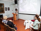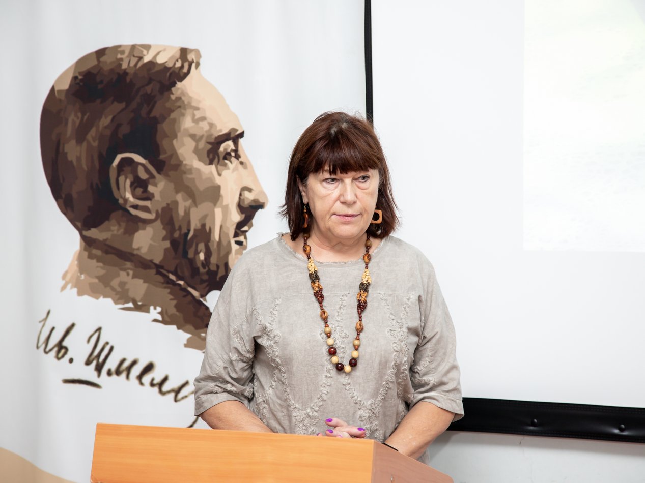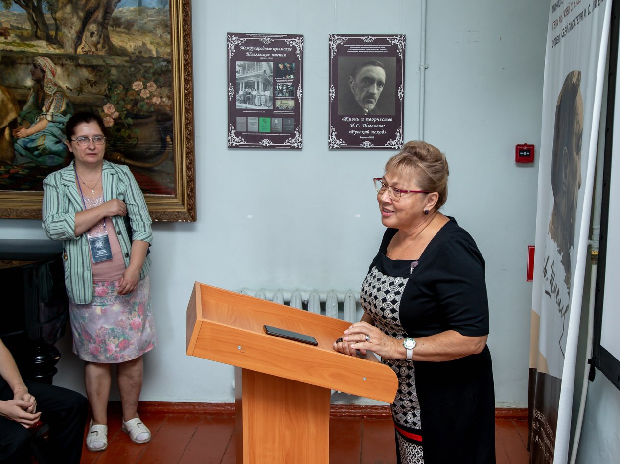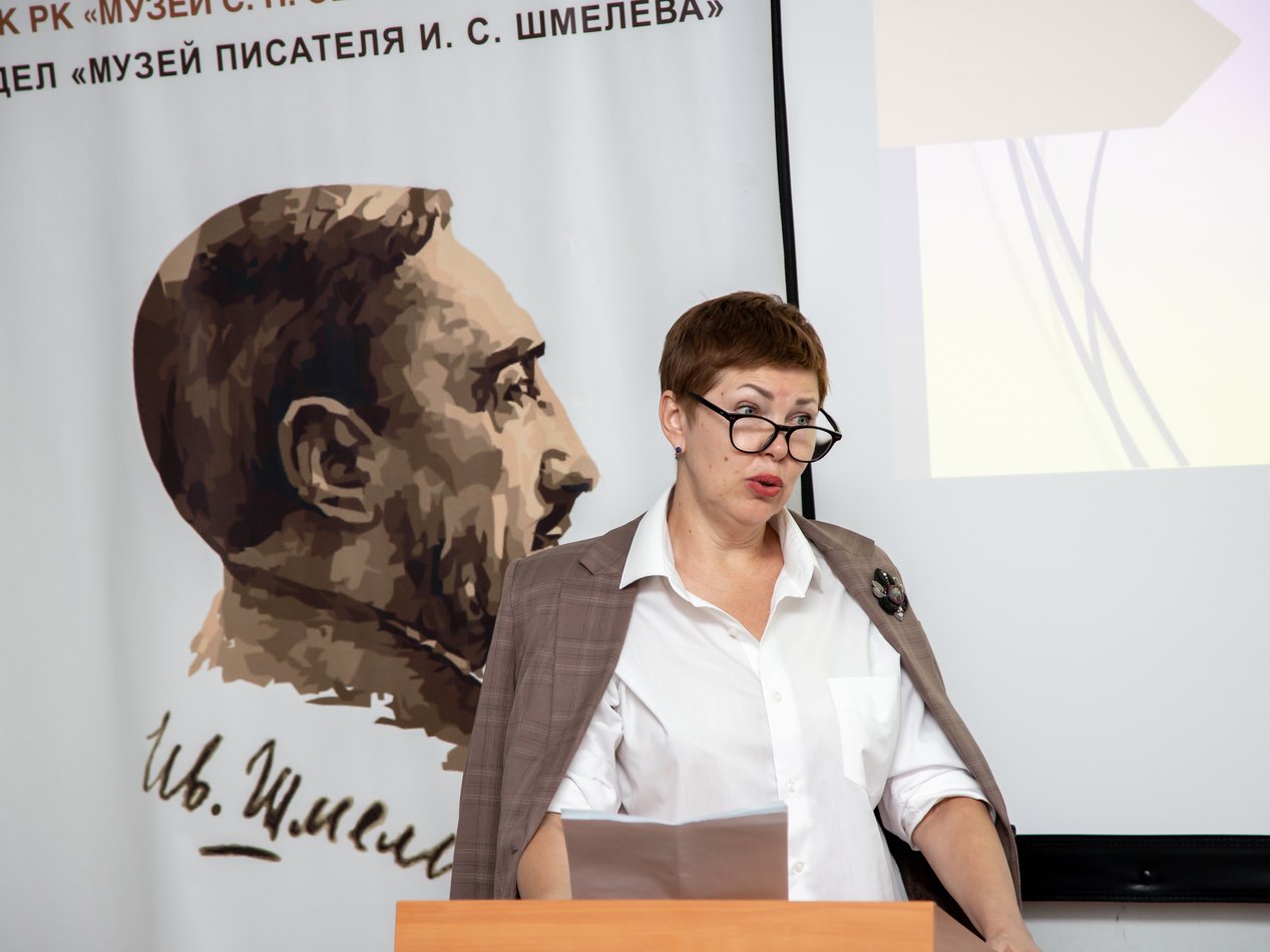 После перерыва прошло секционное заседание «И.С. Шмелёв: язык, стиль, художественная традиция», модераторами которой выступили Лавров Валерий Васильевич, кандидат филологических наук, советник Председателя Государственного Совета Республики Крым и Немирович Светлана Николаевна, директор Музея С.Н. Сергеева-Ценского, заслуженный работник сферы услуг Республики Крым, кандидат экономических наук.